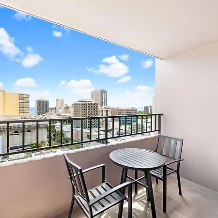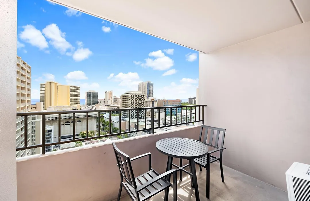 海の景色を見渡せるテラスを提供するRoyal Kuhio 1710 - Spacious Studio With Stunning Ocean City Views In The Heart Of Waikiki! ホノルル ヴィラは、ワイキキ ショッピング プラザから歩いてたった5分離れた場所にあります。